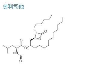 别名: 奥利司他;奥利斯他(脂酶抑制剂);奥尔利司他;奥列司他;赛尼可;奥利斯特; 3-己基-4-[(2S)-2-羟基十三烷基]-2-氧杂环丁酮N-甲酰基-L-亮氨酸酯