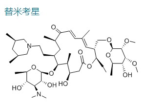 用途及描述: 科研试剂,广泛应用于分子生物学,药理学等科研方面。替米考星具有与大环内酯类药物相似的抗菌活性对革兰氏阳性菌、某些革兰氏阴性菌、支原体、螺旋体等均有抑制作用;对胸膜肺炎放线菌、巴氏杆菌具有比泰乐菌素更强的抗菌活性,Tilmicosin是一种大环内酯类抗生素。兽药用途。用于治疗曼氏杆菌和巴氏杆菌相关的牛羊呼吸系统疾病。
