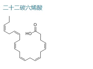 二十二碳六烯酸(DHA)是一种ω-3多不饱和脂肪酸,具有22个碳原子和6个双键,第一个双键发生的位点在三个位置的甲基末端(22点06的n-3)。DHA是脂质膜和髓鞘的成分。DHA也可作为信号分子的前体,如前列腺素和类二十烷酸。