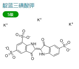 别名: 靛蓝三磺酸钾;靛蓝-5,5ˊ,7-三磺酸三钾盐;靛蓝胭脂红三钾盐;靛青三磺酸钾 5,5',7-靛蓝三磺酸三钾;靛蓝三磺酸钾盐