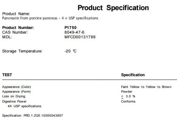| 英文名称:Pancreatin from porcine pancreas |