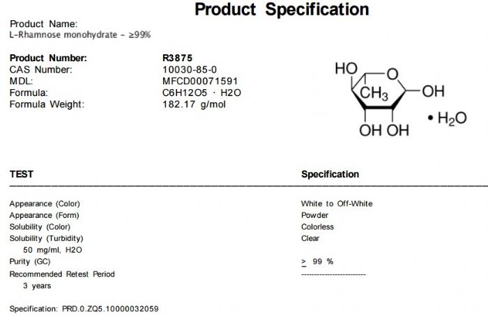 | 备注:别名: 6-脱氧-L-甘露糖 L(+)吡喃鼠李糖 |