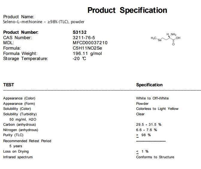| 备注:别名: (S)-2-Amino-4-(methylseleno)butyric acid storage temp: −20°C |