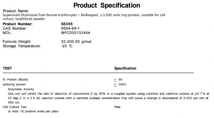 | 英文名称:Superoxide Dismutase from bovine erythrocytes |