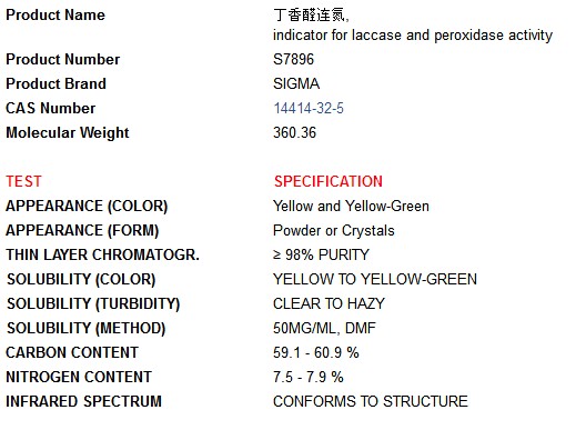 | 英文名称:Syringaldazine |