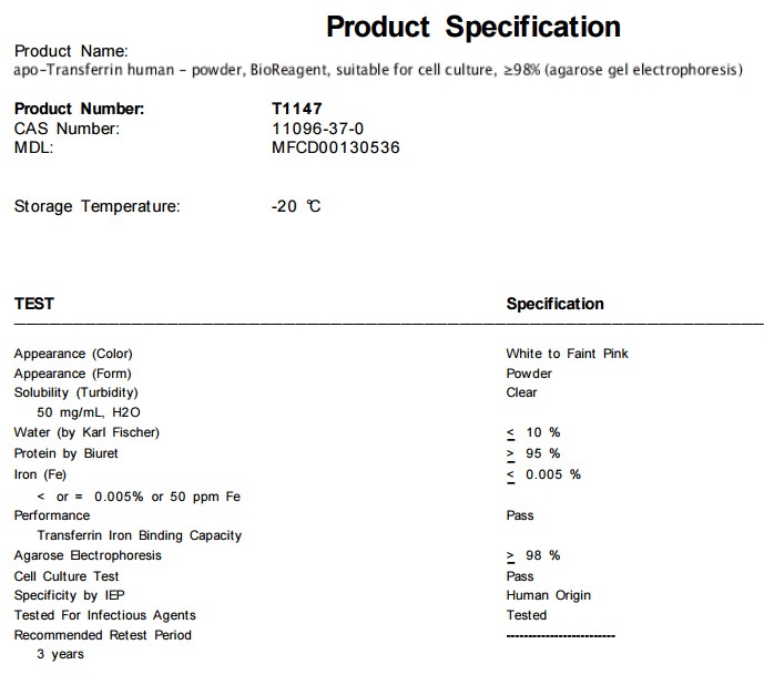 | 中文名称:脱铁转铁蛋白 人 |