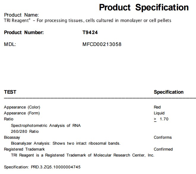 | 中文名称:TRI Reagent® RNA |