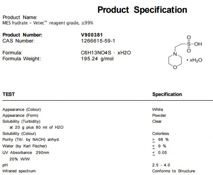| 中文名称:MES 水合物 |