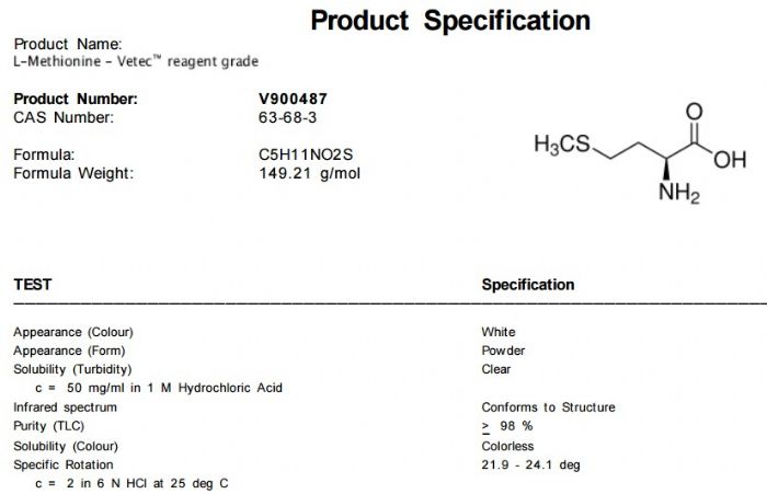| 备注:别名: (S)-2-氨基-4-(甲硫基)丁酸 L-2-氨基-4-(甲硫基)丁酸 常温保存 |