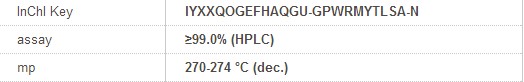 | 备注:分子式(希尔表示法) C8H9N3S · HCl · H2O 分子量 233.72 常温保存 |