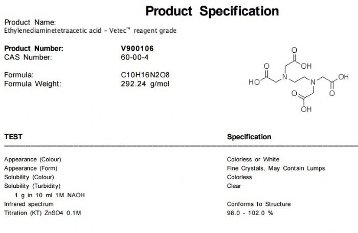 | 中文名称:乙二胺四乙酸 |