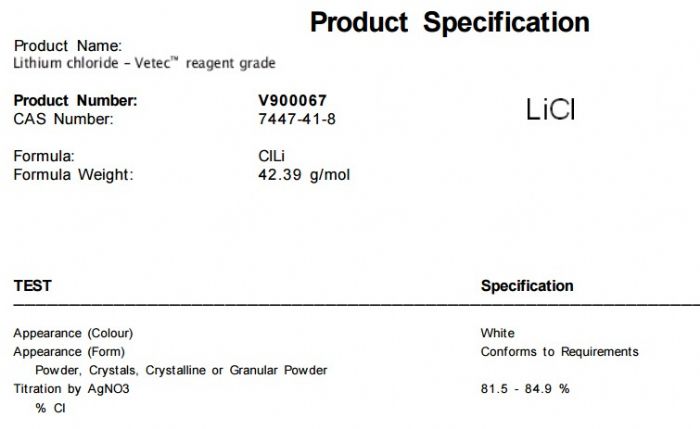| 英文名称:Lithium chloride |