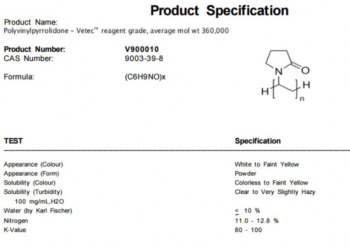 | 英文名称:Polyvinylpyrrolidone |