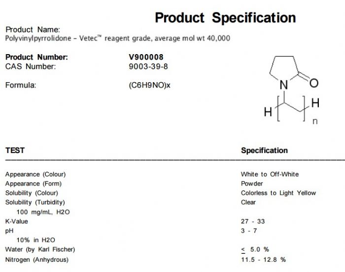 | 中文名称:聚乙烯吡咯烷酮 40000 |