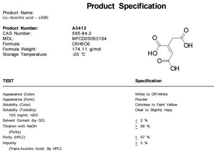 | 中文名称:顺式乌头酸 |