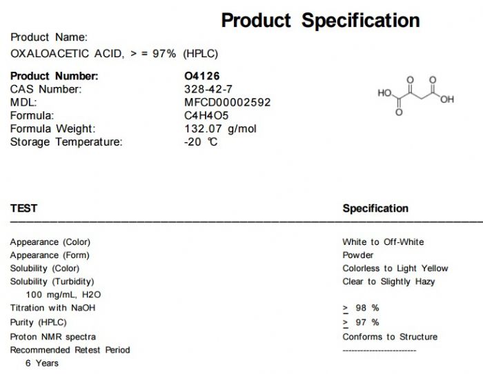 | 中文名称:草酰乙酸 |