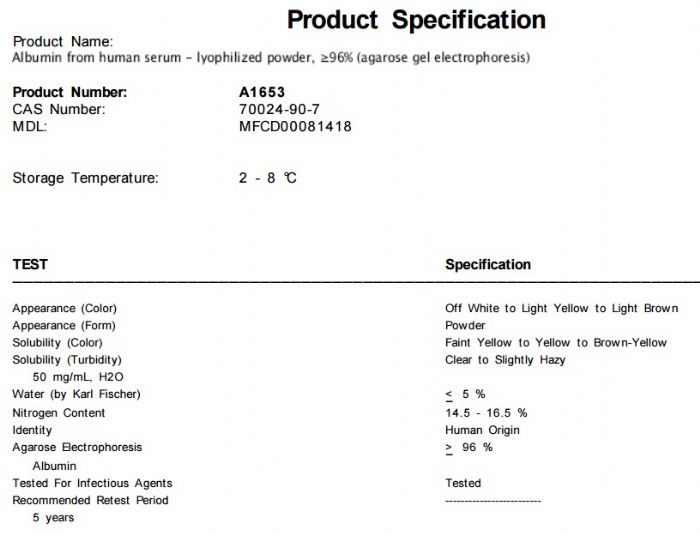 | 英文名称:Albumin from human serum |