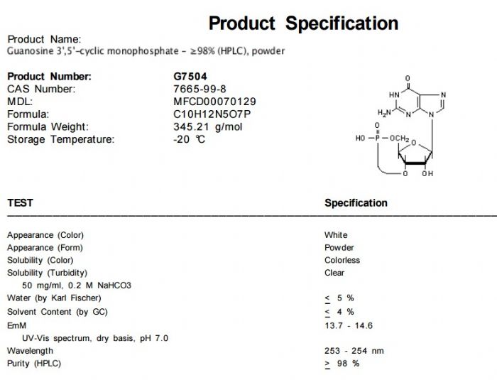 | 备注:别名: cGMP cyclic GMP storage temp:−20°C |