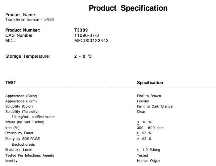 | 英文名称:Transferrin human |