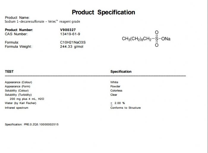| 中文名称:1-癸烷磺酸钠 |