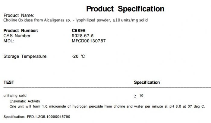 | 备注:别名: Choline: oxygen 1-oxidoreductase storage temp:−20°C |
