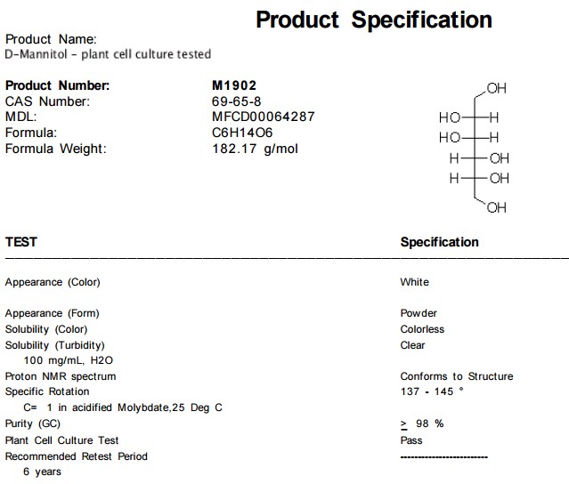 | 中文名称:D-甘露糖醇 |