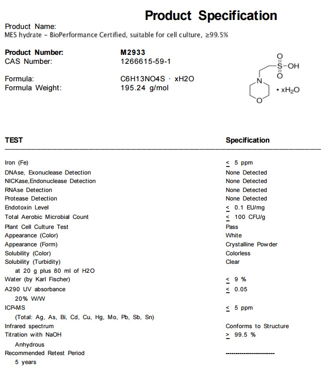| 英文名称:MES hydrate |