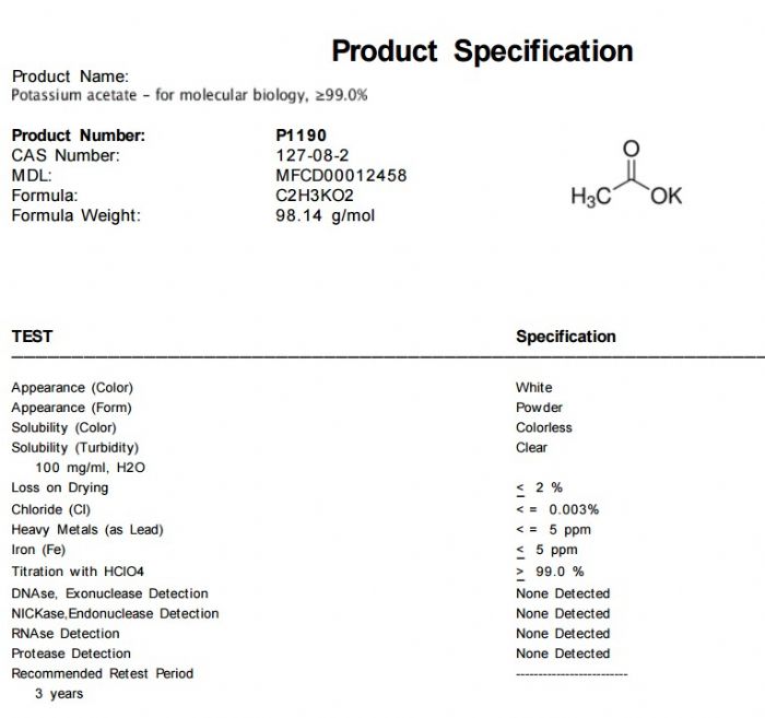 | 中文名称:乙酸钾 |