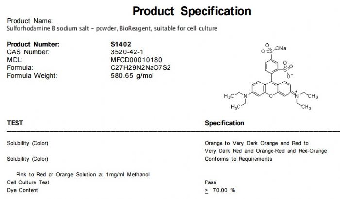 | 英文名称:Sulforhodamine B sodium salt |