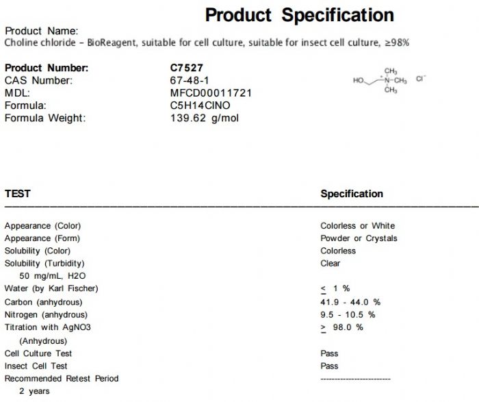 | 备注:别名: (2-羟乙基)三甲基氯化铵 常温保存 |