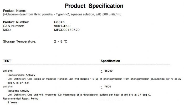 | 备注:别名: β-葡萄糖醛酸苷酶 storage temp:2-8°C |