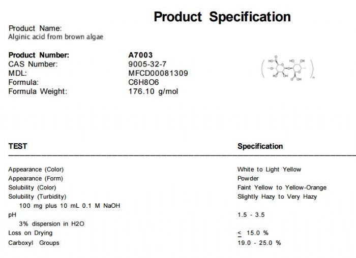 | 英文名称:Alginic acid from brown algae |