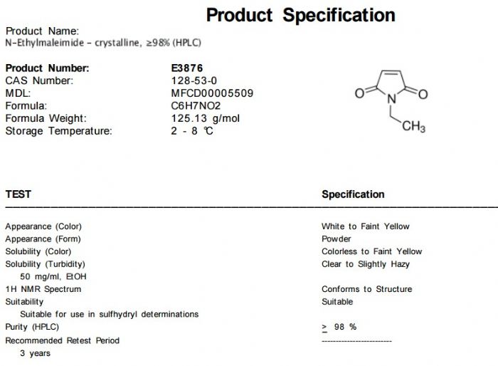 | 英文名称:N-Ethylmaleimide |