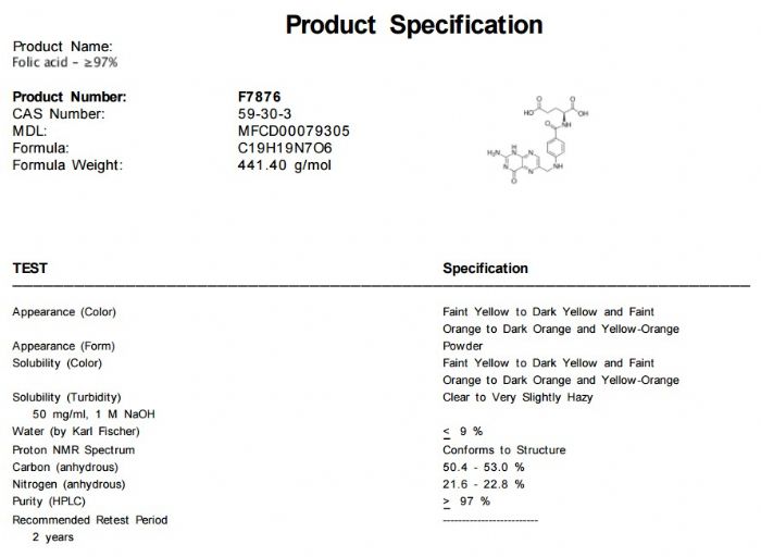 | 中文名称:叶酸 |