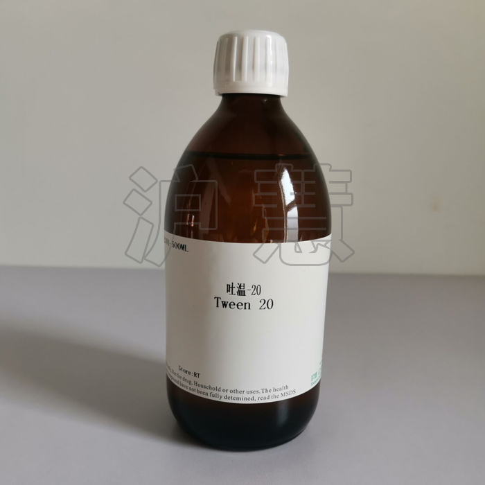 吐温-20(Tween-20),又称聚山梨酯-20(Polysorbate-20),一种来源于山梨聚糖类酯的吐温类非离子型表面活性剂,易混溶于水,广泛应用于生物化学研究中,包括1)一种乳化剂用以制备稳定的油包水型乳状液,尤其是用在制药业;2)膜结合蛋白提取实验中,常以2%浓度去除膜周边蛋白;3)基于膜检测的免疫学实验中,常以0.05%的浓度用作一种封闭剂;4)还可以0.005~0.5%的浓度用于裂解哺乳动物细胞。