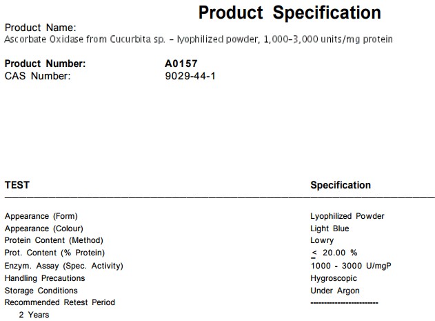 | 英文名称:Ascorbate Oxidase from Cucurbita sp |