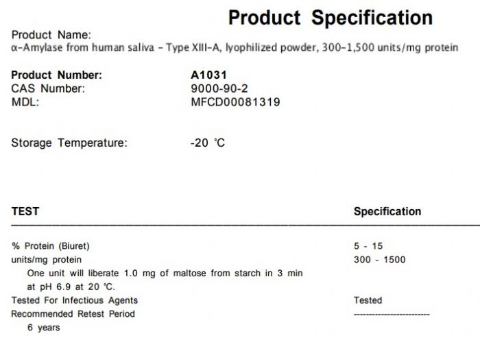 | 中文名称:α-淀粉酶 来源于人类唾液 |