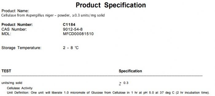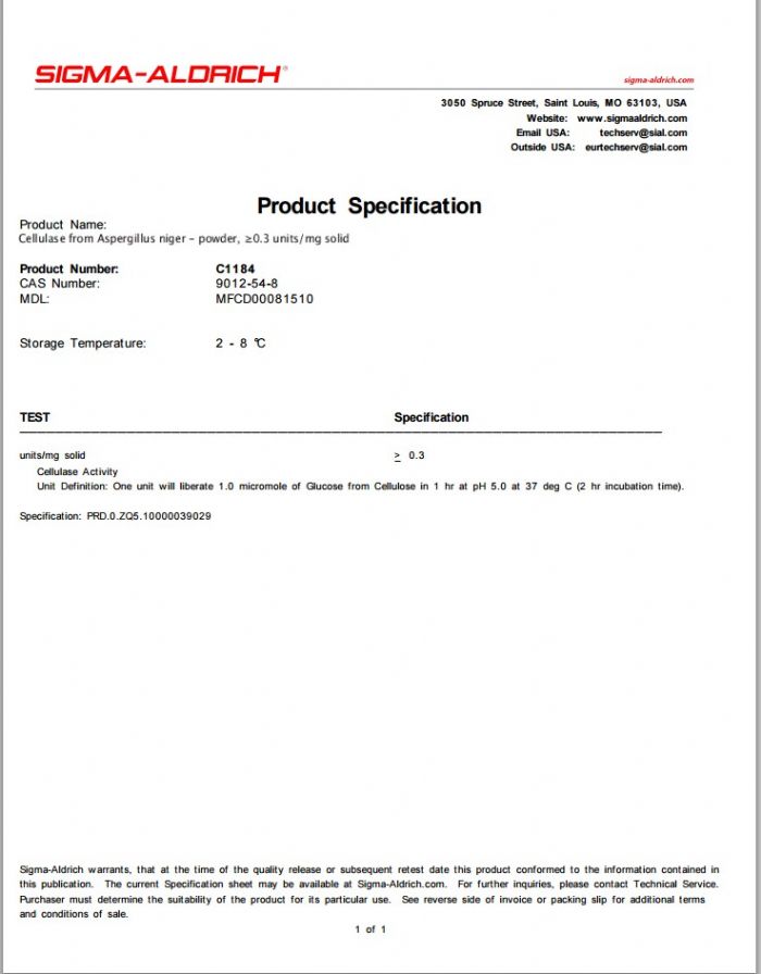 中文名称:Cellulase 来源于黑曲霉 原货号:C1184