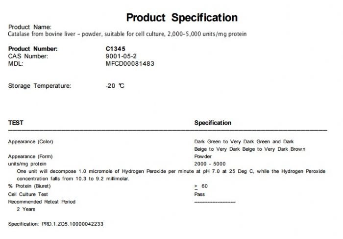 | 中文名称:过氧化氢酶 来源于牛肝脏 |
