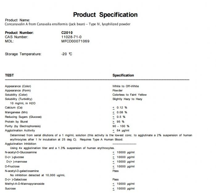 | 英文名称:Concanavalin A from Canavalia ensiformis (Jack bean) |