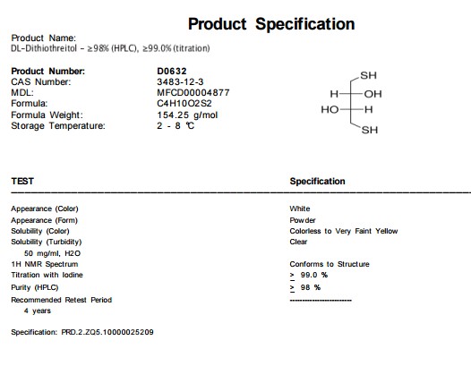 | 英文名称:DL-Dithiothreitol |