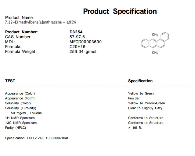 | 中文名称:7,12-二甲基苯并[a]蒽 |