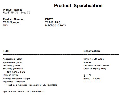 英文名称:Ficoll® PM 70 规格:250G