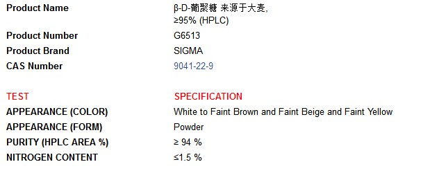 | 中文名称:β-D-葡聚糖 来源于大麦 |