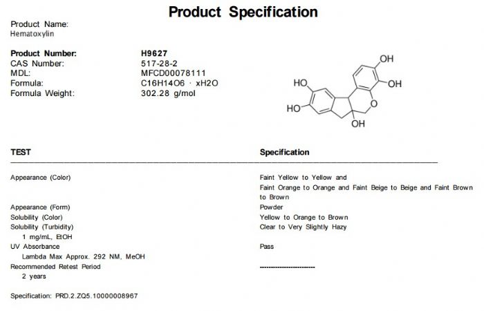 中文名称:苏木精 原货号:H9627