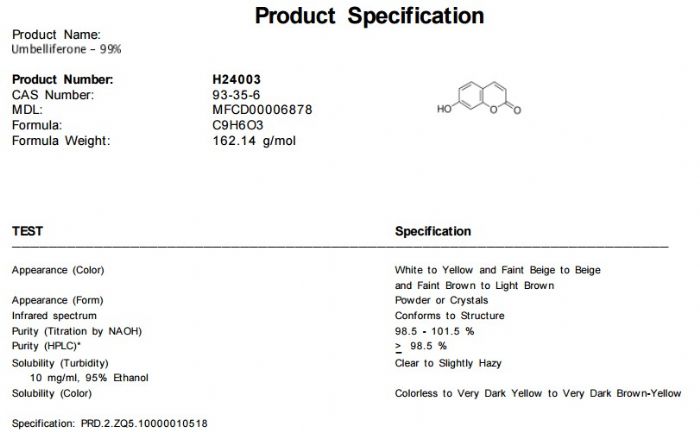 备注:别名: 7-羟基-2H-1-苯并吡喃-2-酮 7-羟基香豆素 常温保存