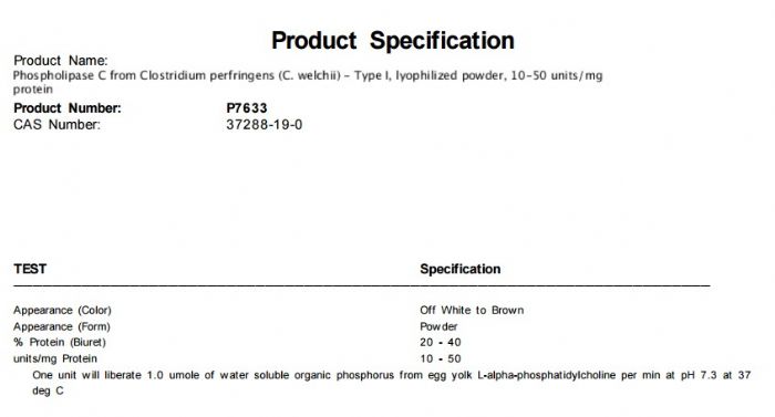 | 英文名称:Phospholipase C from Clostridium perfringens (C. welchii) |